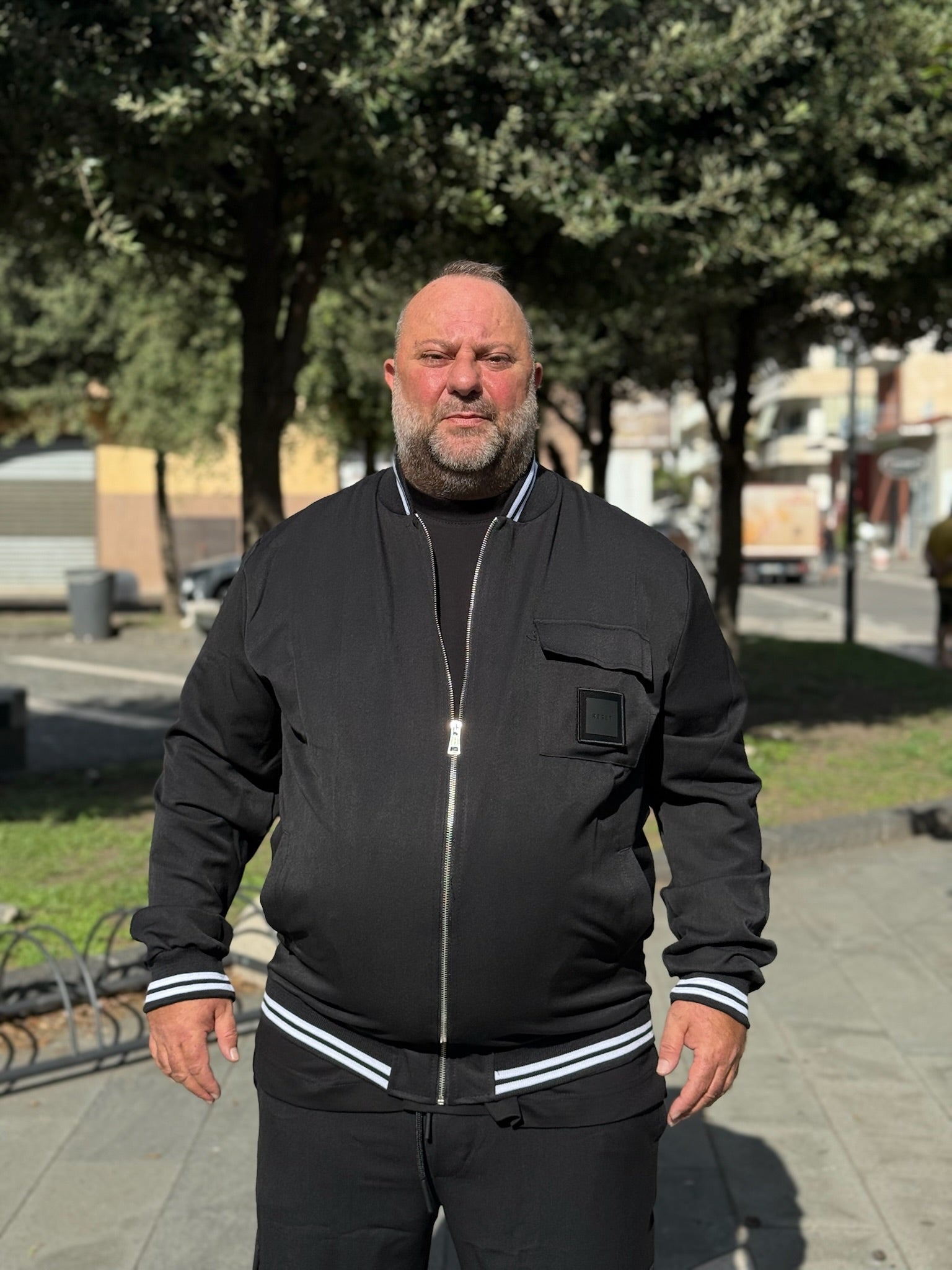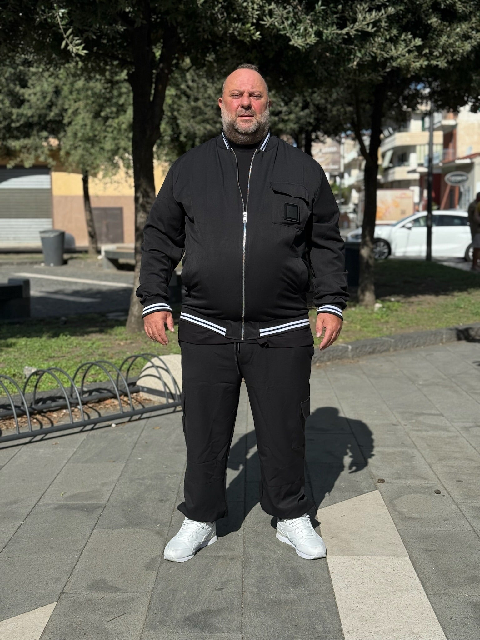 felpa con chiusura con zip e pantalone con tasconi e molla alla caviglia